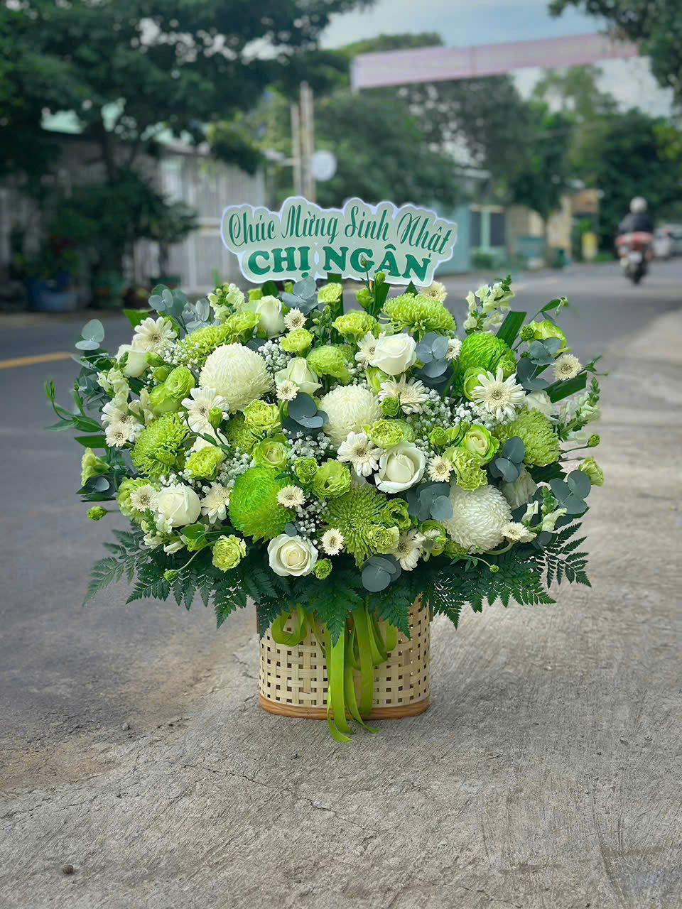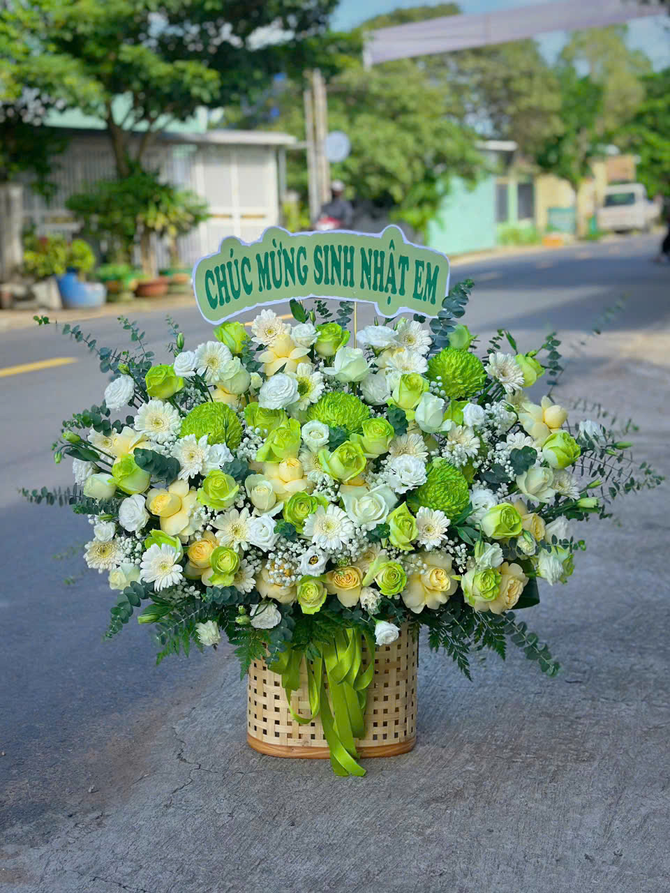 Giỏ hoa sinh nhật xanh trắng