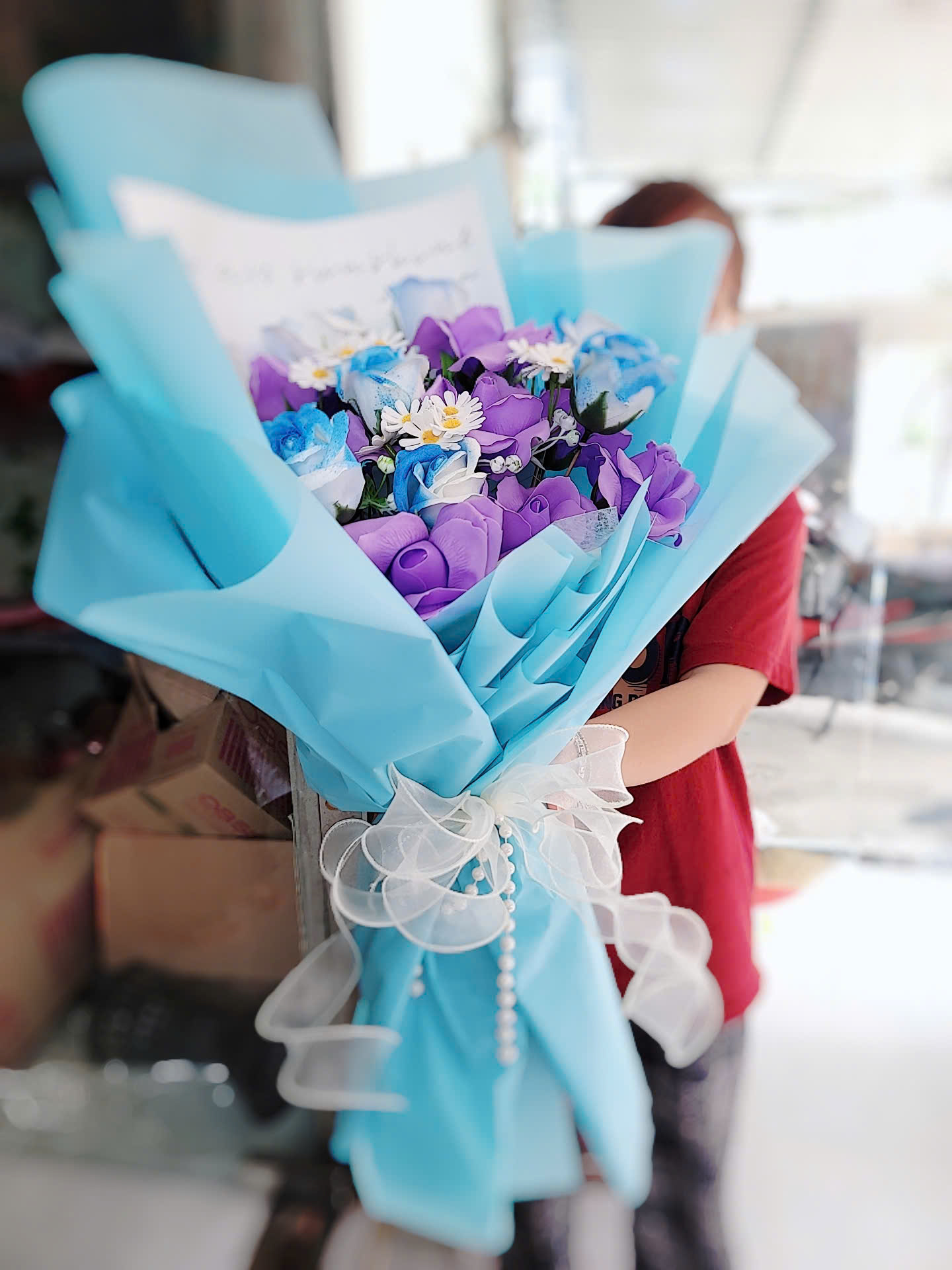 Bó hoa cầu hôn xanh tím order mang vẻ đẹp lãng mạn và huyền bí, được kết hợp hài hòa giữa sắc tím thủy chung cùng gam xanh dịu mát. Màu tím tượng trưng cho tình yêu vĩnh cửu, còn màu xanh gợi cảm giác bình yên và hy vọng, tạo nên thông điệp gắn bó dài lâu. Đây là mẫu hoa lý tưởng để đồng hành trong khoảnh khắc cầu hôn ngọt ngào, giúp lời tỏ tình trở nên trọn vẹn và khó quên. 💍💜🌿