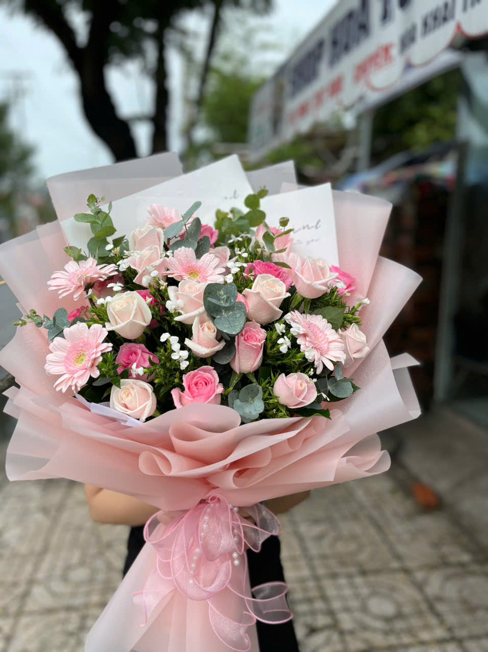 Bó hoa hồng tông hồng mang vẻ đẹp ngọt ngào, lãng mạn và đầy tinh tế. Những cánh hồng hồng nhẹ nhàng tượng trưng cho sự dịu dàng, trong sáng và tình yêu ngọt ngào. Đây là lựa chọn lý tưởng để dành tặng cho người yêu, bạn bè hoặc gửi gắm lời chúc tốt đẹp trong các dịp sinh nhật, kỷ niệm hay ngày đặc biệt.